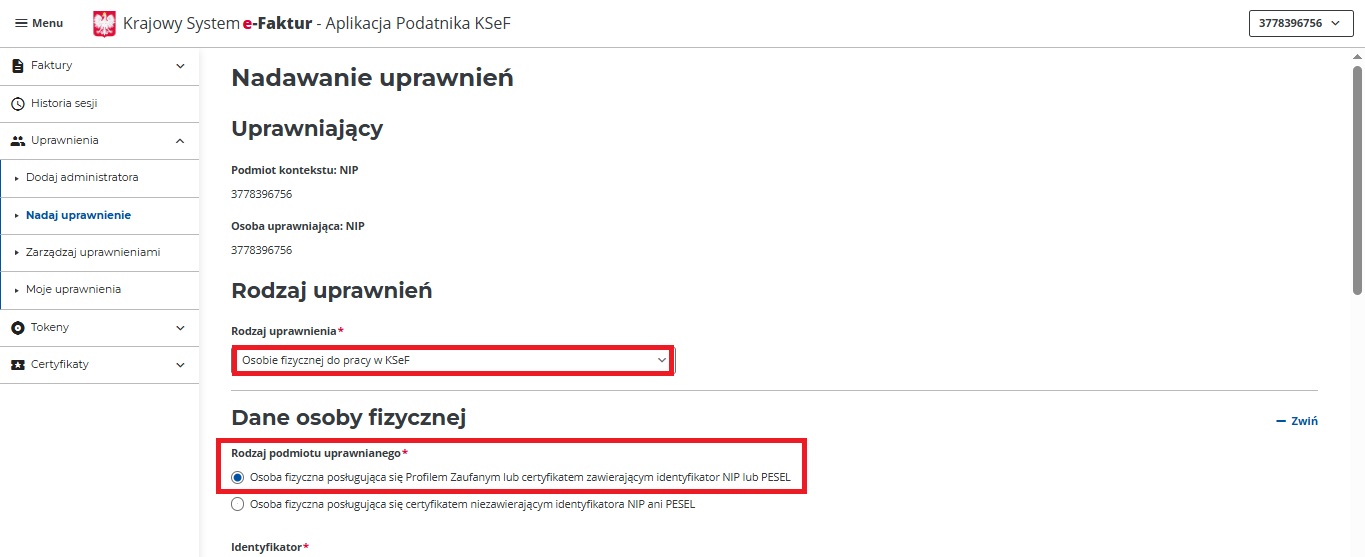 Uprawnienia w KSeF dla osoby fizycznej: