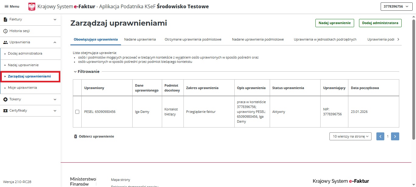 • Właścicielskie (dla JDG): Jako podatnik prowadzący działalność, masz automatyczne uprawnienia właścicielskie (NIP) i możesz działać w systemie samodzielnie lub nadawać uprawnienia innym.