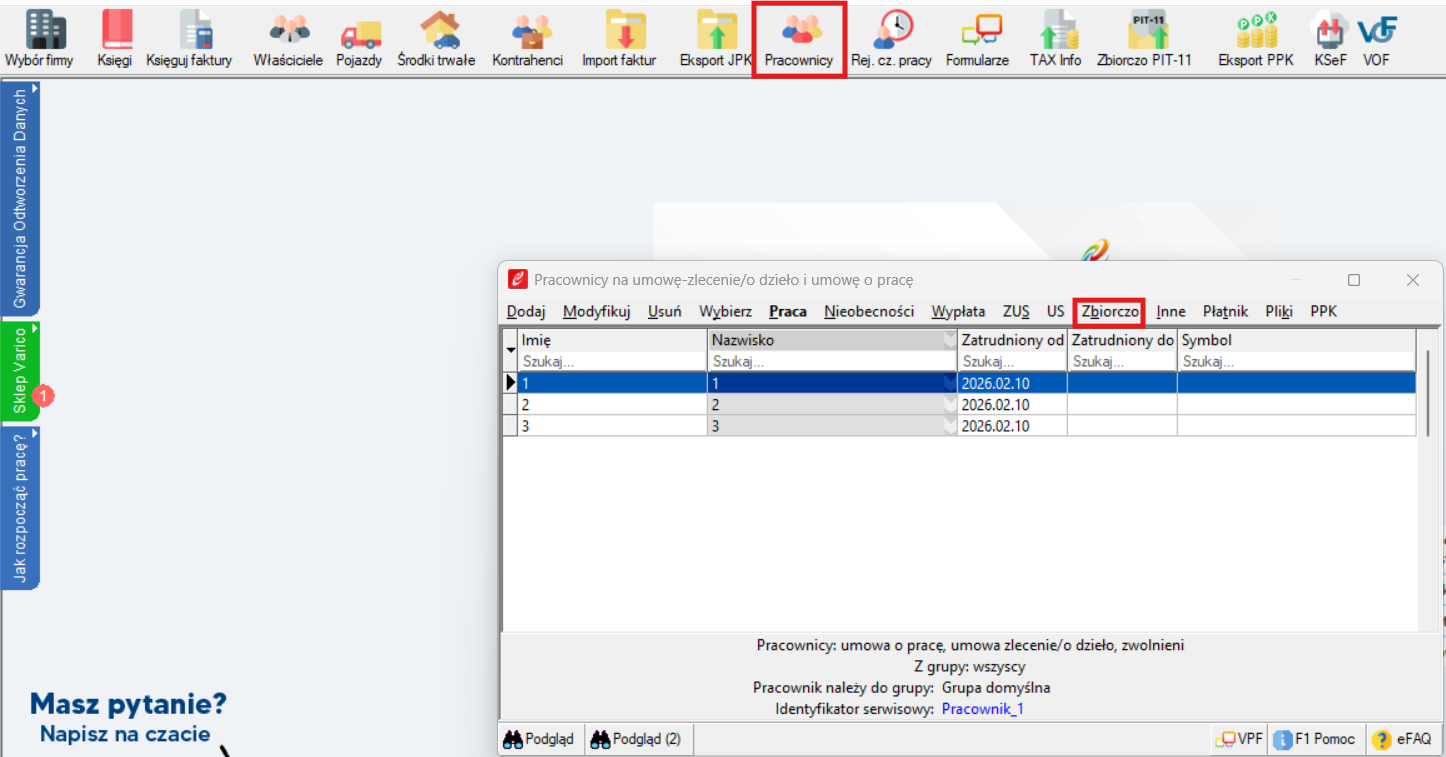 Aby wystawić deklarację PIT-4R należy przejść do opcji Pracownicy > Zbiorczo