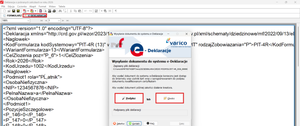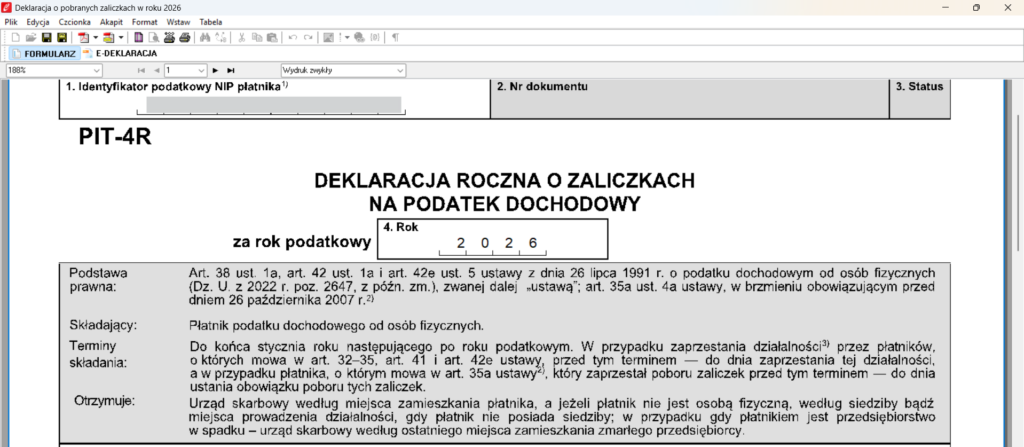 Po naciśnięciu przycisku PIT-4R generowana jest deklaracja, która otwiera się w nowym oknie.