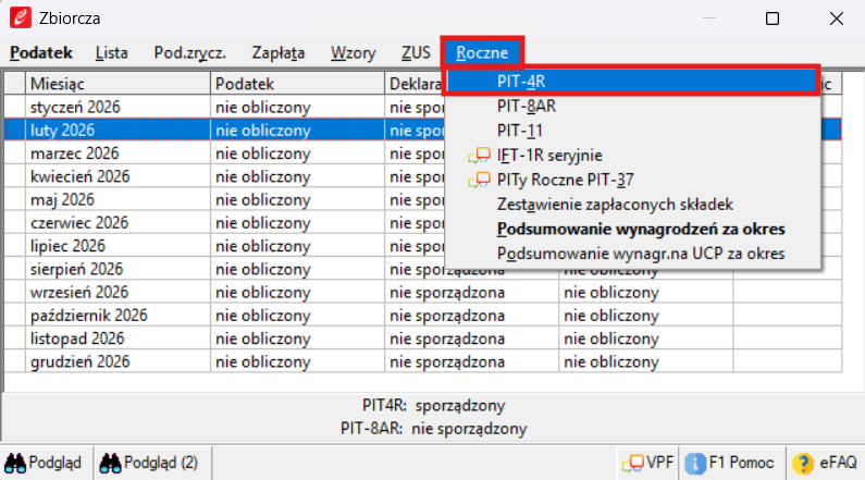 Następnie należy przejść do opcji Roczne > Pit-4R