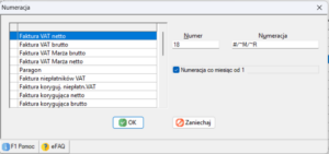 Numeracja co miesiąc od 1: Zaznaczenie tej opcji sprawi, że z każdym nowym miesiącem licznik faktur będzie się zerował i zaczynał od numeru 1.