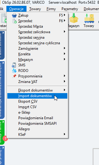 W tym momencie zaimportowany dokument wskakuje do opcji: Operacje -> Import dokumentów: