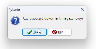 Wraz z zaimportowaniem dokumentu program zapyta się o utworzenie dokumentu magazynowego: