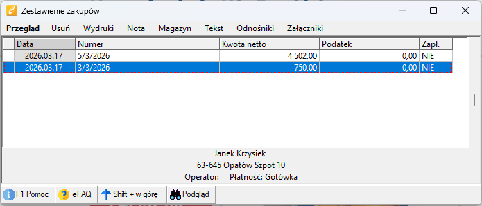 Zatwierdzamy i faktura zakupowa jest dostępna z poziomu Dokumenty -> Zakupów: