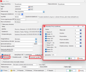 - Blisko poprzednio zaznaczonego pola znajduje się przycisk „Parametry ryczałtu”.