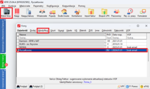 - Wybór firmy -> Zaznaczamy firmę która nas interesuje -> Modyfikuj