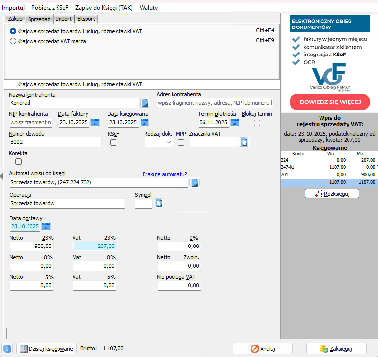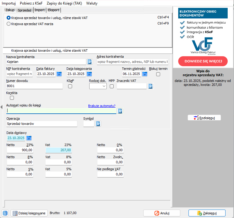 Przechodzimy do Księguj faktury.