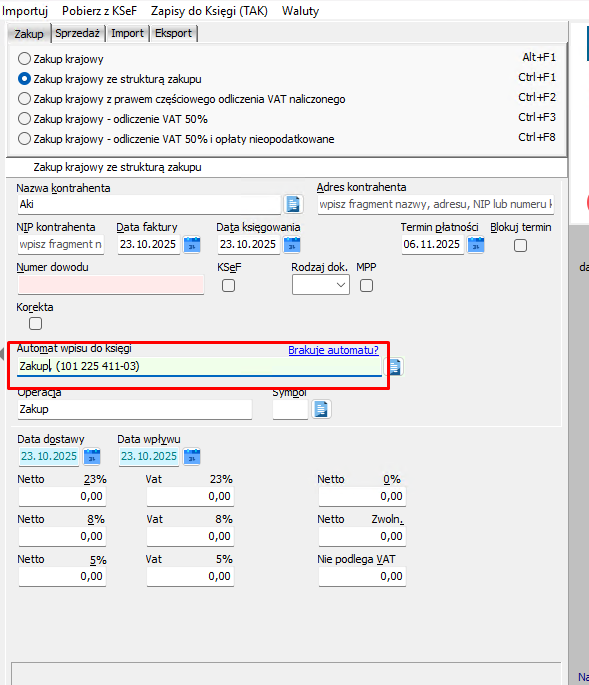 Po włączeniu programu wchodzimy w Księguj Faktury i widzimy, że automat się pojawił.