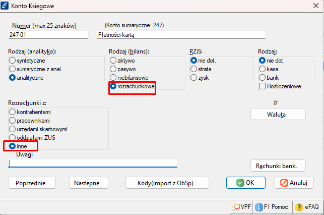 W sekcji Rozrachunki z: wybieramy opcję inne ze względu na to, że nie chcemy przypisywać żadnego kontrahenta.