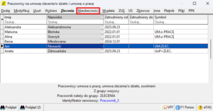 - Zaznacz na liście właściwego pracownika (pracującego na umowie zlecenia).