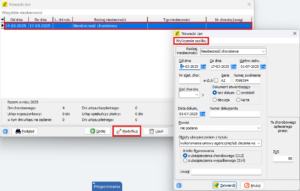 Po wprowadzeniu i zapisaniu nieobecności (np. zwolnienia lekarskiego) zleceniobiorcy: